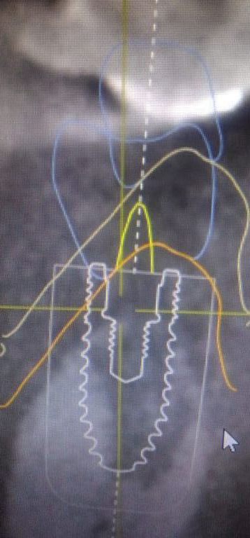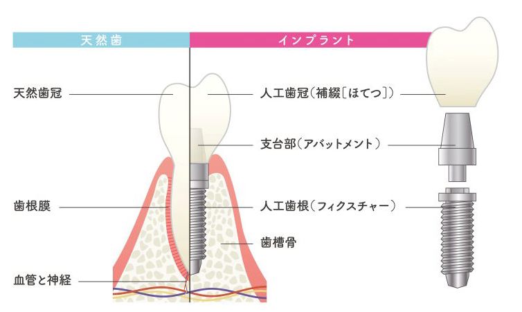 | インプラント治療 歯を失った部位に人工の歯根を埋入し、それに被せ物を施し、噛めるようにします。 ブリッジのように前後の歯を削ることがなく、入れ歯の煩わしさもない、よく自然な噛み心地を取り戻すことができます。 当院は、国産で信頼性が高い京セラのインプラントを用いております。 高精細CTと口腔内スキャナーで得られた3D画像をマッチングし、インプラント埋入から最終的な嚙み合わせまでをプランニングします。 CADCAMで埋入ガイドを製作し、位置のズレがない正確な埋入を行っています。 また、必要に応じて、骨造成も行います。 |