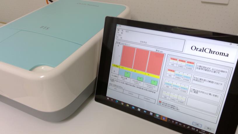| ●口臭測定 歯周病の進行や歯や舌の汚れなど、口が原因の口臭、蓄膿症による鼻腔や胃腸や糖尿病が原因の口臭があります。 当院では、口臭の原因となるガスの濃度を測定するオーラクロマを導入しております。 呼気中に含まれる揮発性硫黄化合物を口臭原因の三要素(硫化水素・メチルメルカプタン・ジメチルサルファイド)に分類。 それぞれのガスに対して濃度を表示され、それらが人間の嗅覚に感じるレベルの臭いである判別します。 |