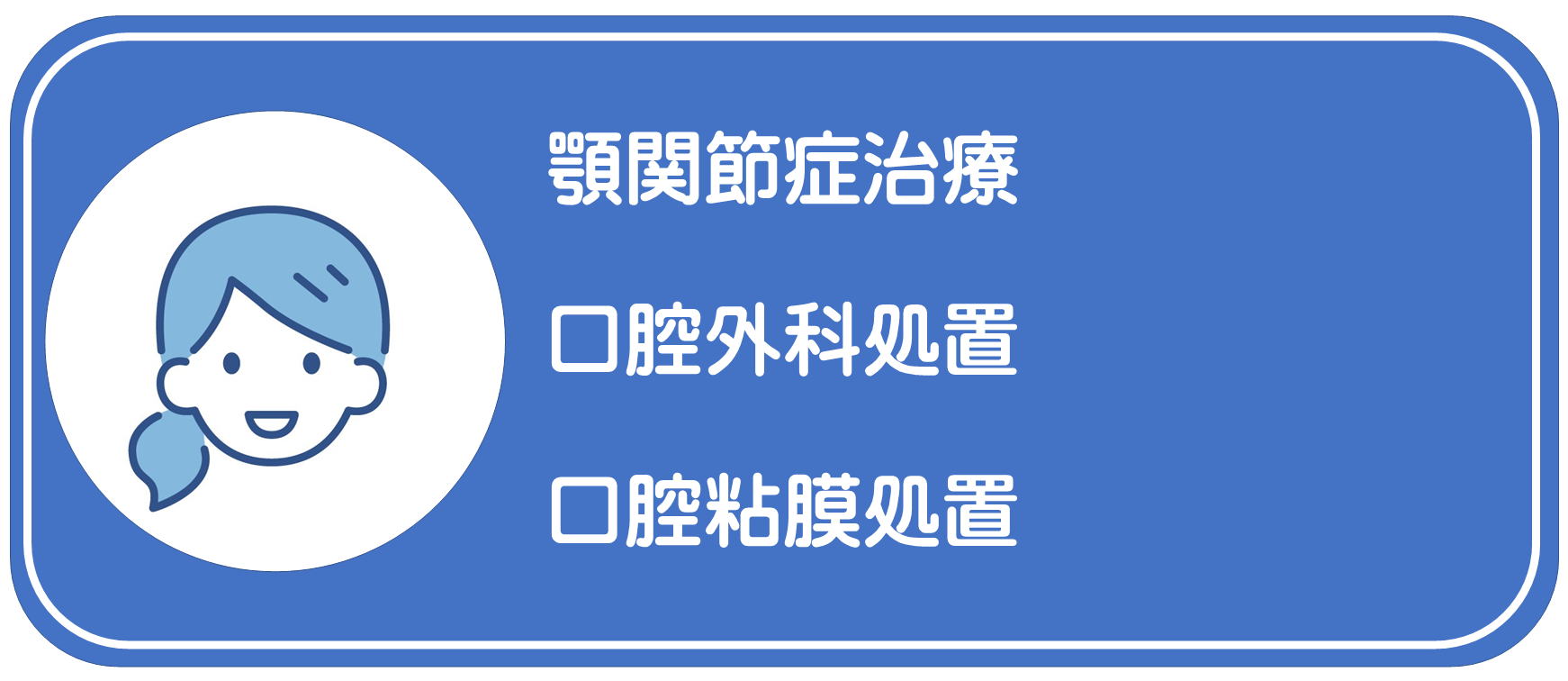 | ●口腔粘膜処置 口内炎やヘルペス、舌痛症、口腔乾燥症などの口腔粘膜の疾患に対処します。 金属アレルギーが疑われるの場合、皮膚科でのアレルギー検査を紹介させていただきます。 なかなか治らない口内炎は、口腔がんの初期の可能性もありますので、放置せずご相談ください。 |