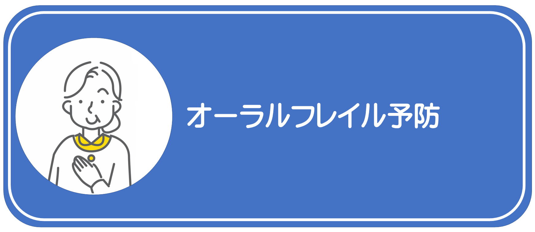 | ●オーラルフレイル予防 オーラルフレイルとは、加齢に伴い、歯の喪失や硬いものが噛めないなどの咀嚼機能の低下からはじまり、飲み込み機能(嚥下機能)の低下へと連鎖。 さらに悪化すると咀嚼障害や嚥下障害による栄養不足から心身の機能低下へ進行する『口からはじまる身体の衰退』です。 歯周病の治療や入れ歯の製作で噛めるにする一方で、口に関する“ささいな衰え”を早期に発見するため、滑舌や飲み込み、咀嚼能力検査を行います。 オーラルフレイルが疑われる場合、口腔機能向上のための口や舌の運動指導を行います。 |